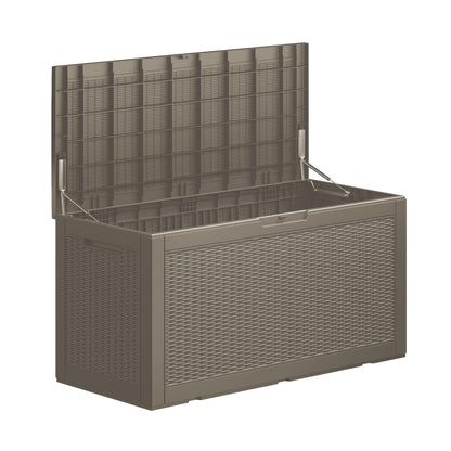- This deck box is as stylish as it is functional, seamlessly blending with any outdoor décor. Whether your space is modern or classic, it adds a touch of sophistication while providing ample storage. Its clean, timeless design enhances the look of your patio, garden, pool area, or even indoor spaces, making it the blend of form and function.