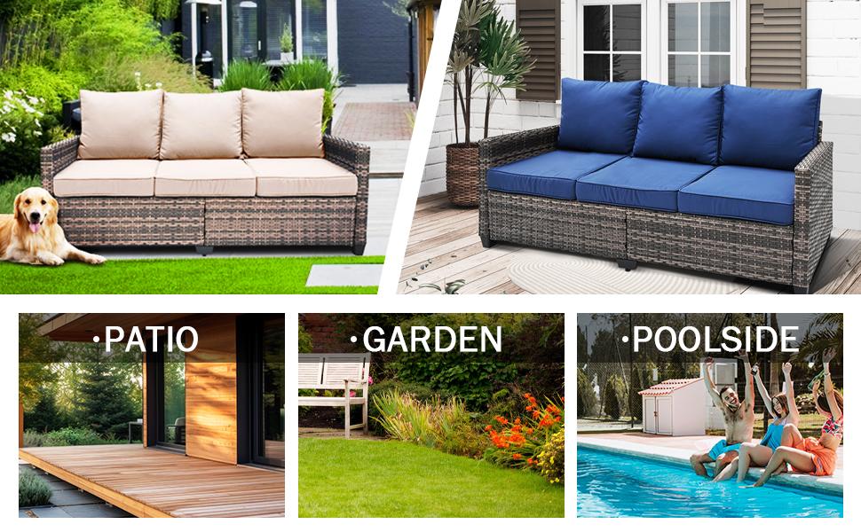 【Suitable for multiple occasions】The mixed brown wicker furniture design is suitable for various decoration styles. The sofa set can be rearranged freely, and it is flexible to adapt to outdoor terraces, porches, backyards, balconies, poolside, gardens and other suitable indoor spaces.