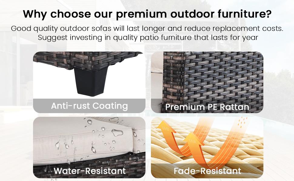 【High-quality frame material】Made of steel frame and PE wicker, combined with all-weather synthetic resin, it ensures extremely high durability and beauty. Rattan wicker is not only strong and durable, but also presents a sophisticated appearance.