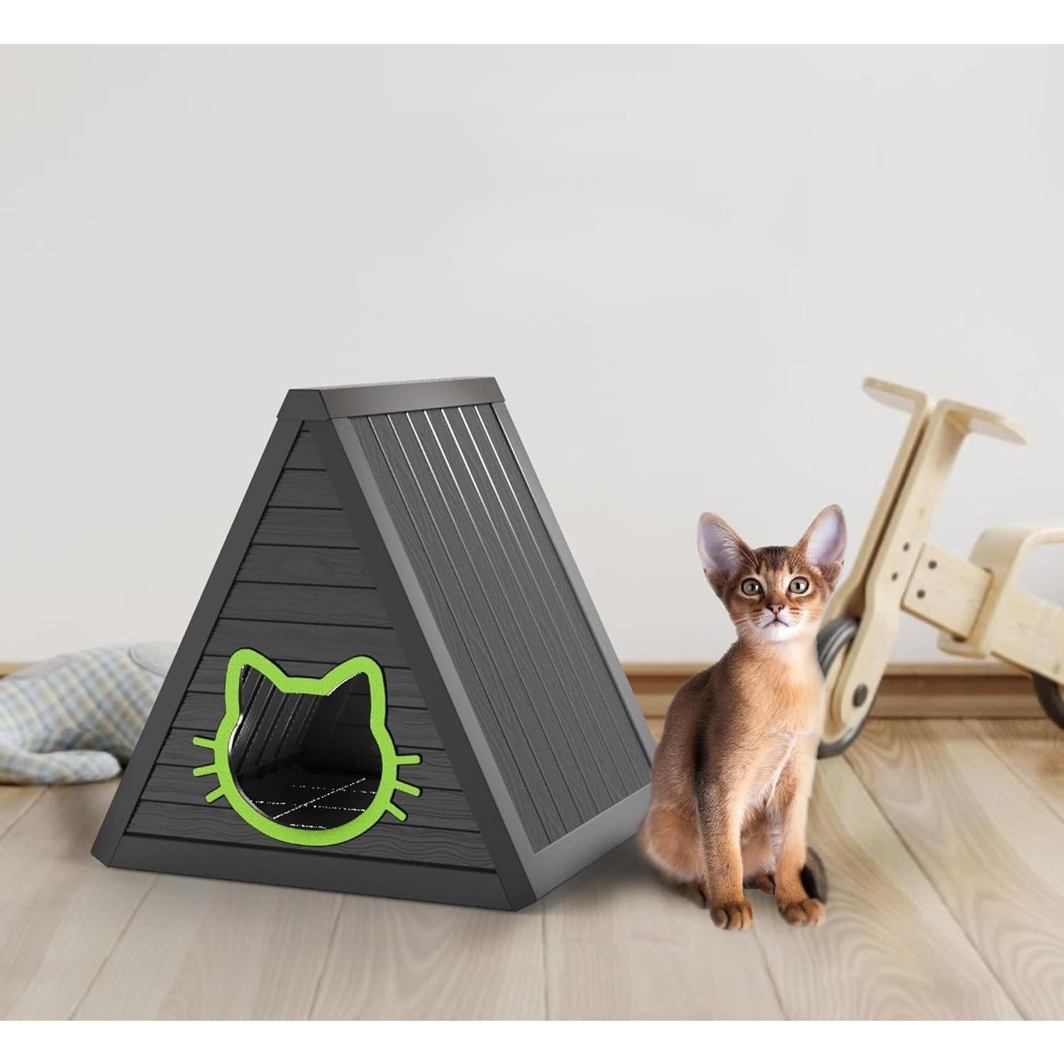 ● Interactive & Stylish:Hanging plush ball at the entrance adds playful entertainment, while the sleek black finish complements home decor.