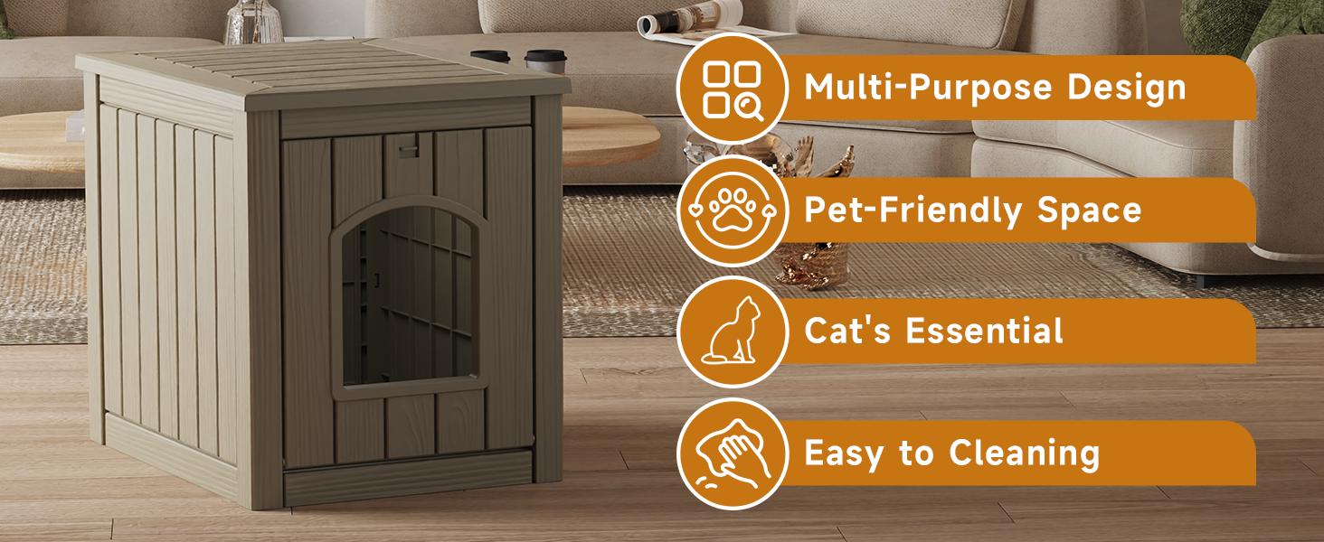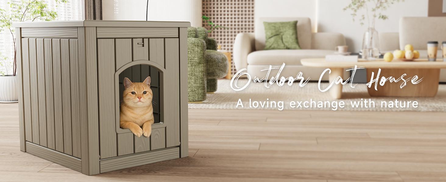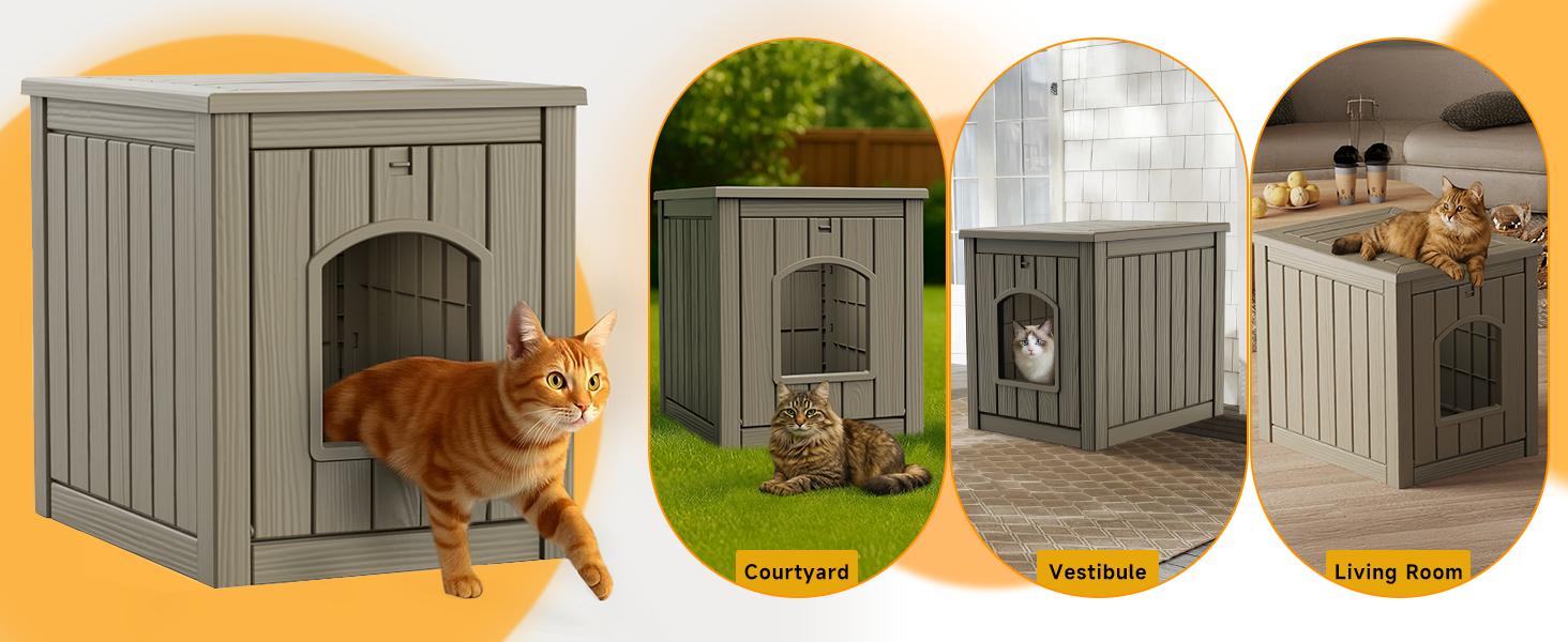 ● Discreet Outdoor Aesthetic - Neutral gray finish blends into gardens, patios, or rustic landscapes, offering a natural-looking shelter for cats.