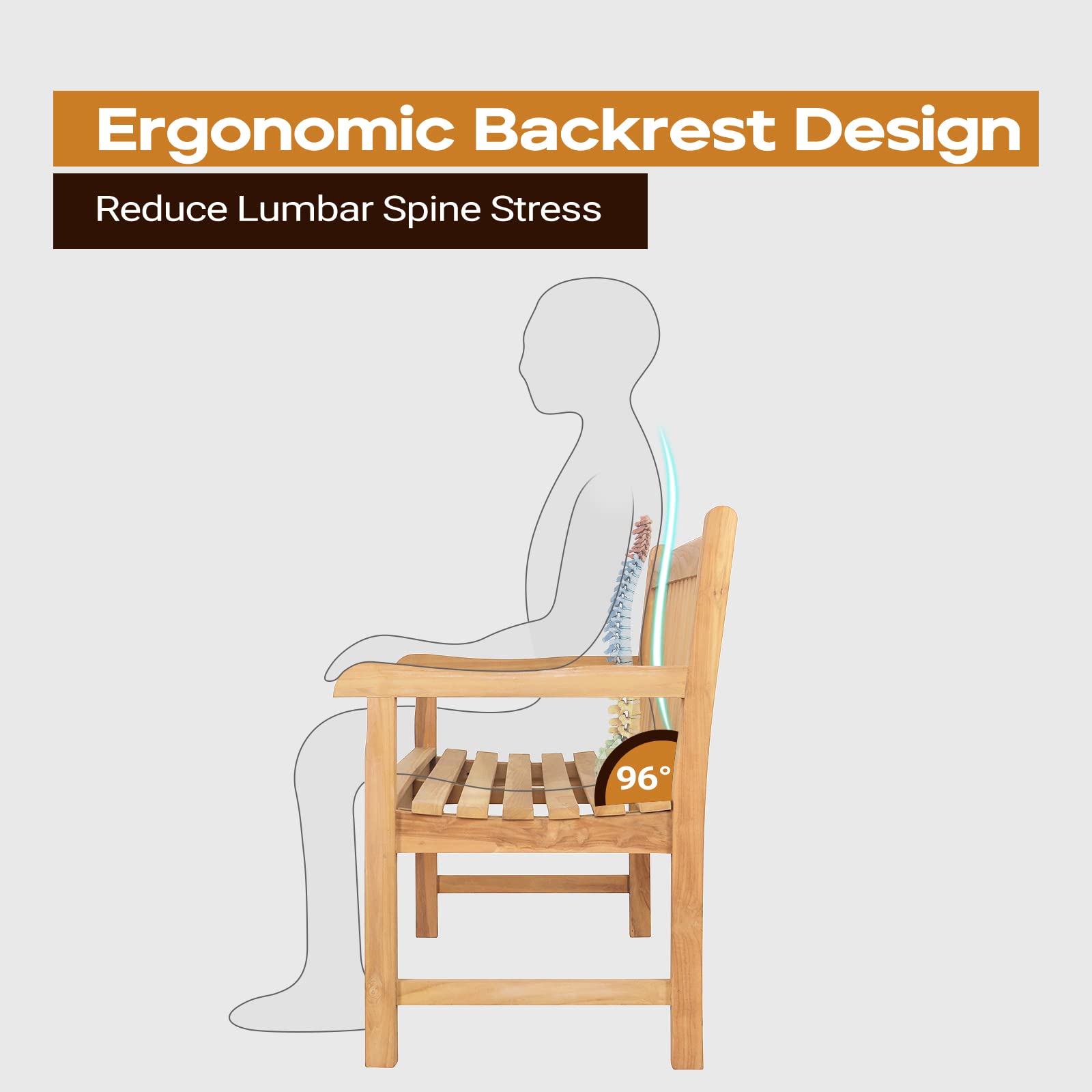 Yardgrace 2-Person Outdoor Bench, A-Grade Natural Teak Bench - Outdoor Garden Bench with Curved Backrest & Arch Armrest, Patio Bench -Weatherproof Garden Seating for, Balcony Porch & Park, All-Weather Fade-Resistant Patio Furniture