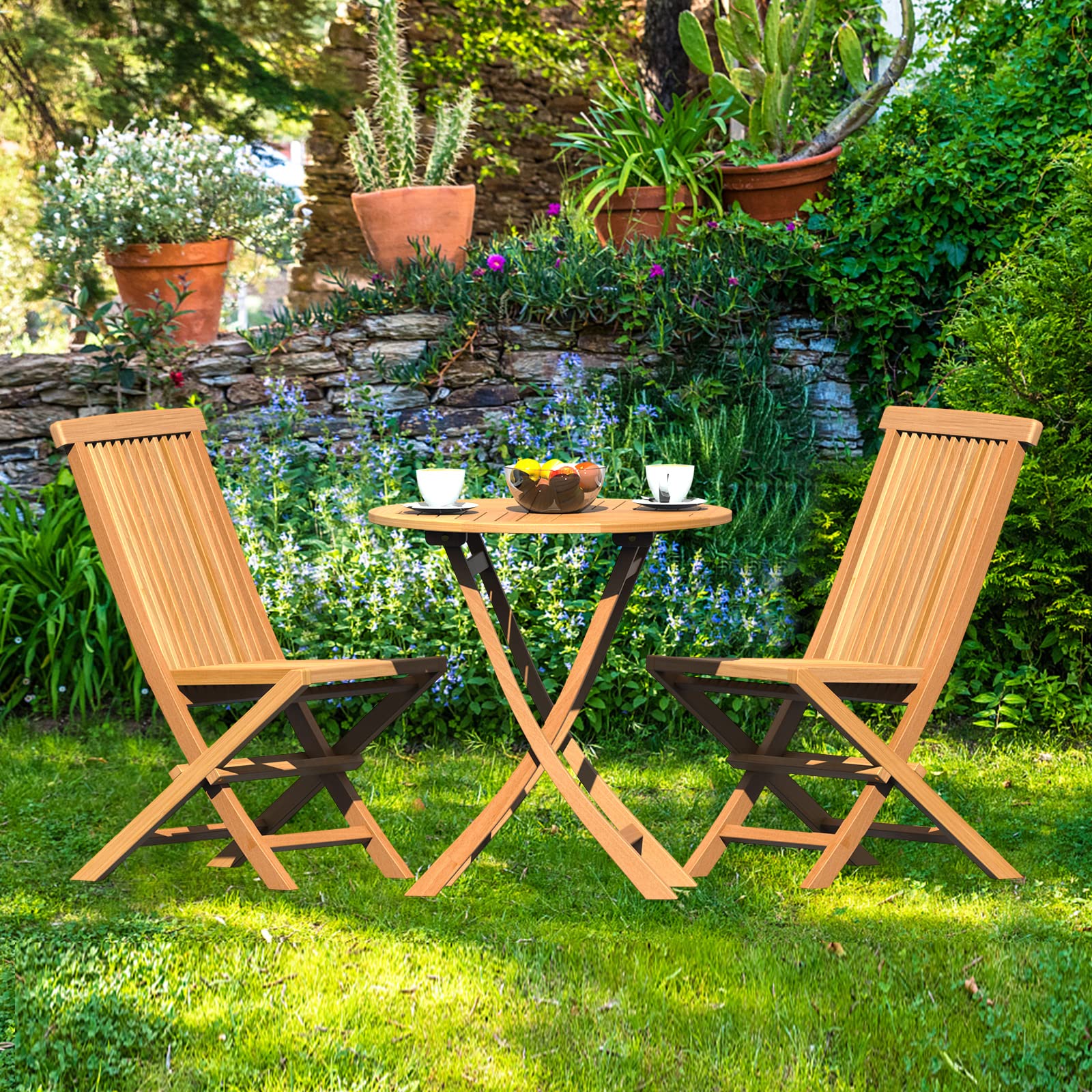 3-Piece Patio Bistro Set, Teak Wood Folding Bistro Table and Chairs Set of 2