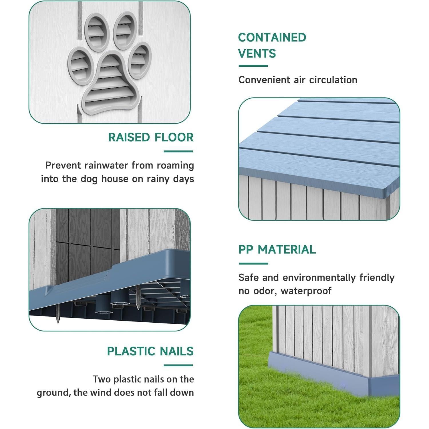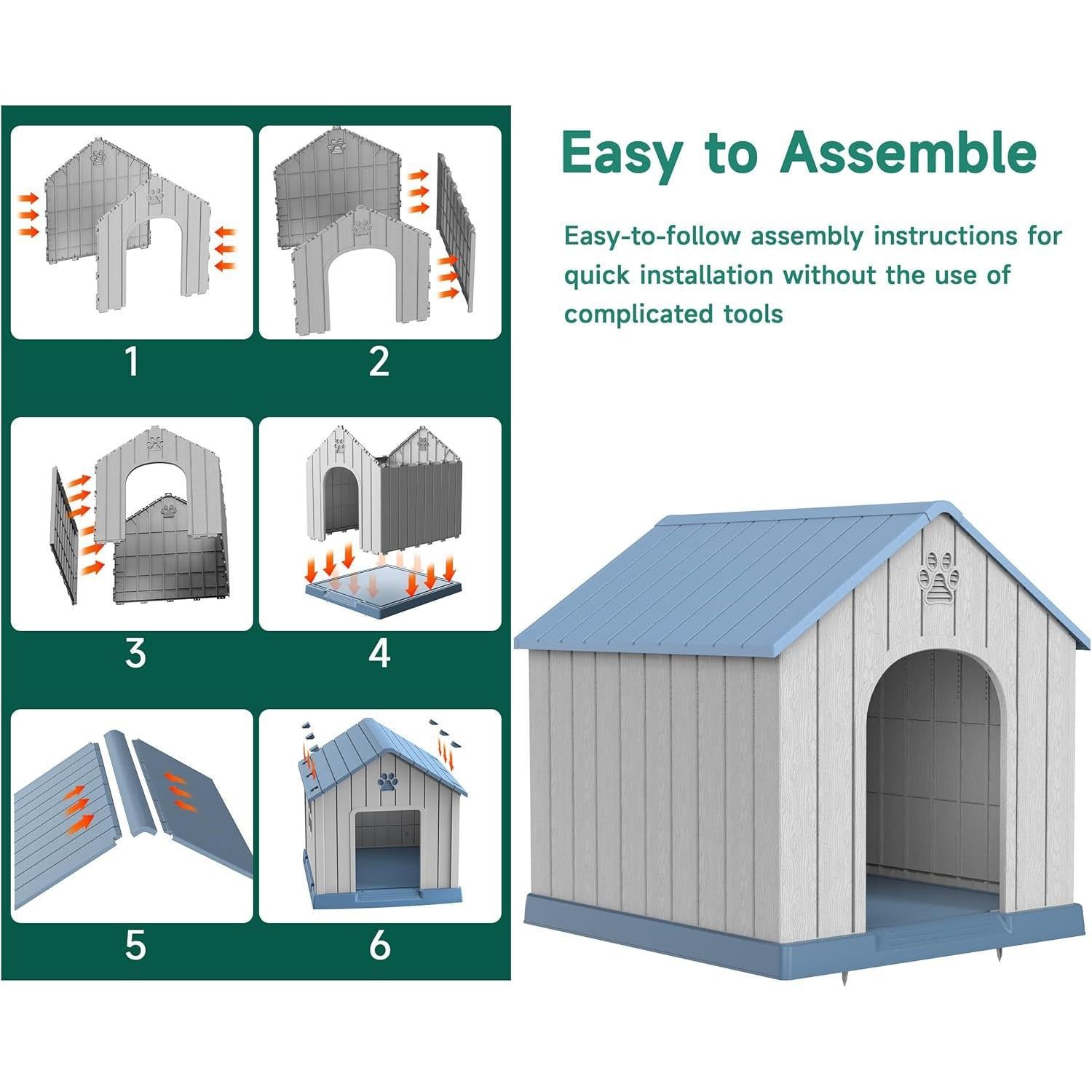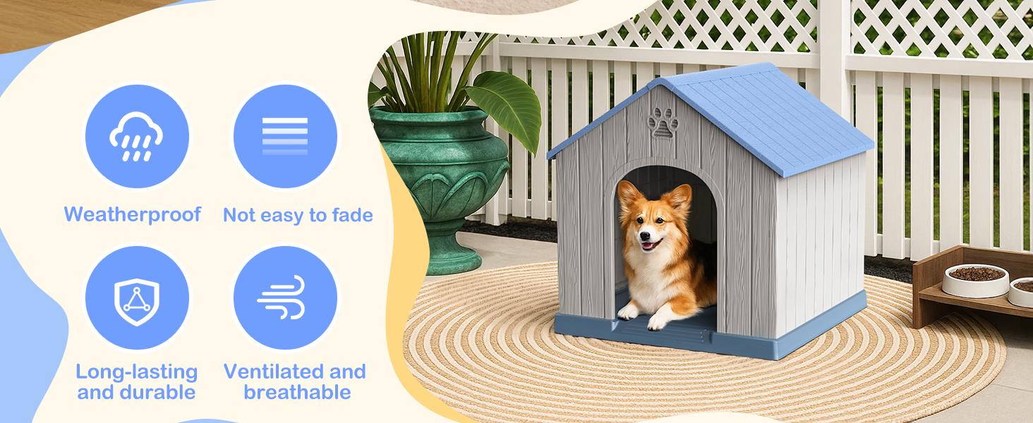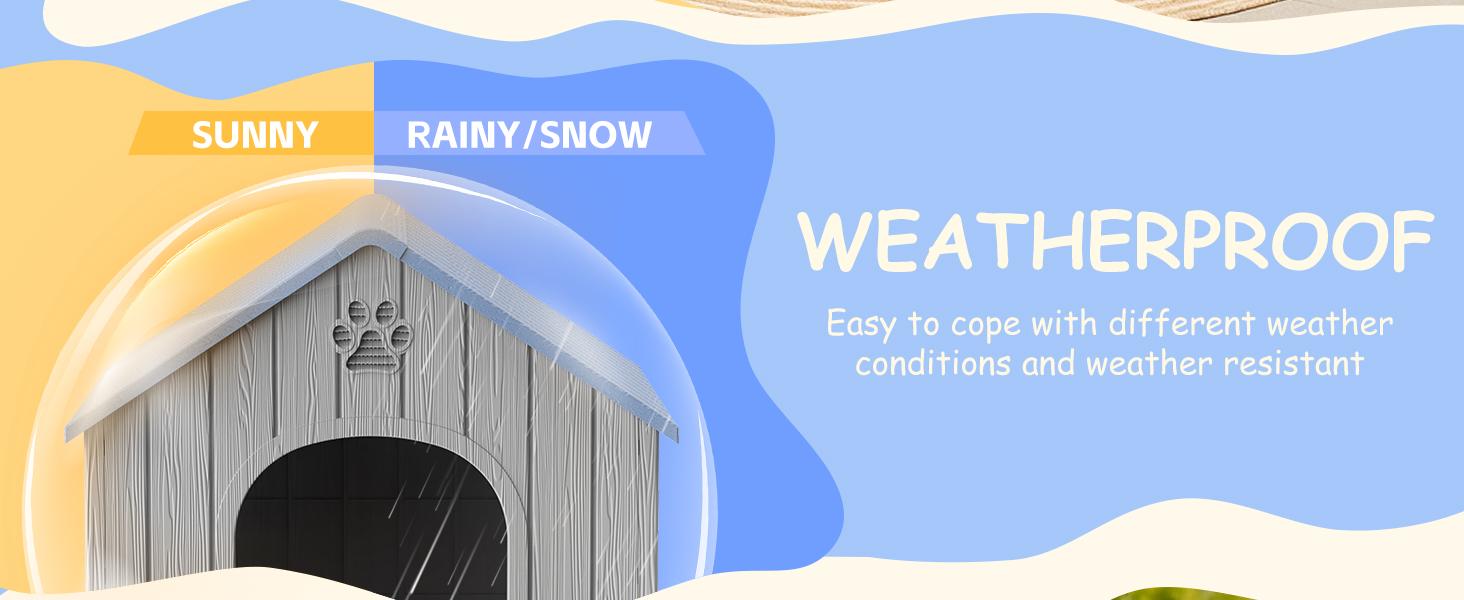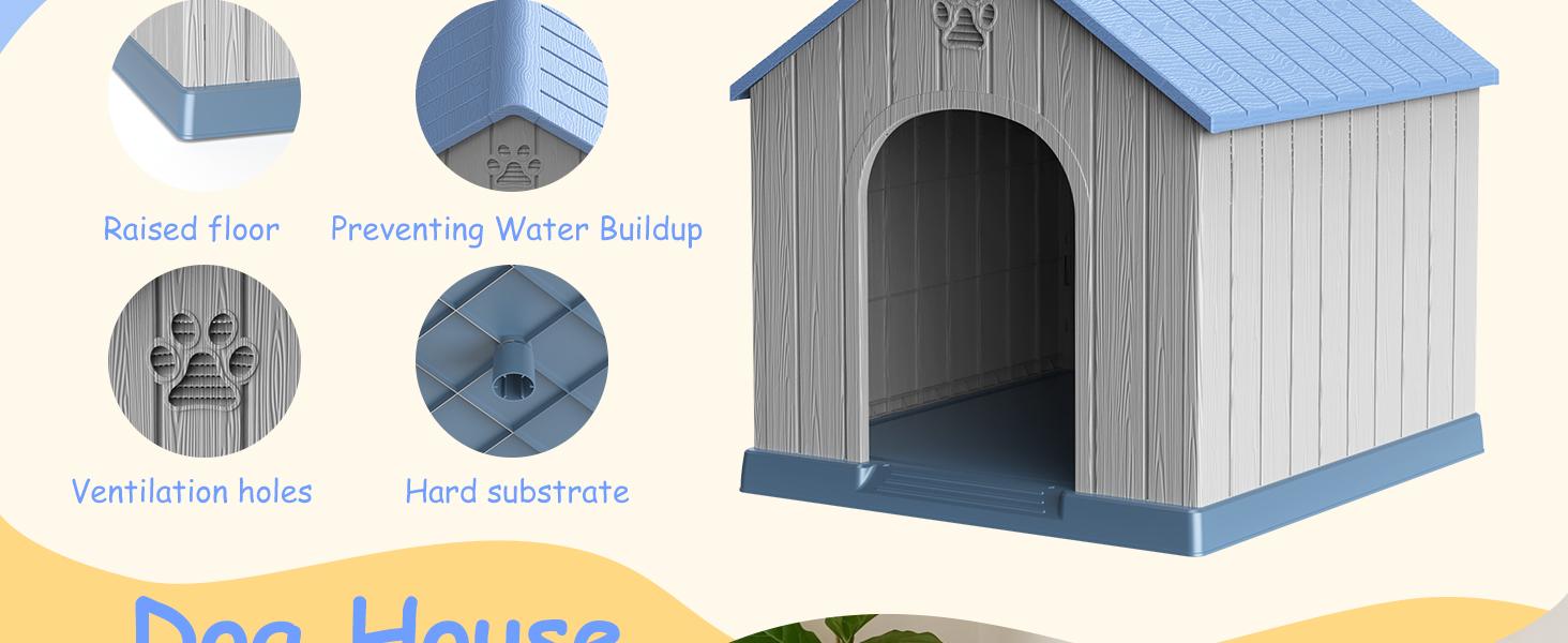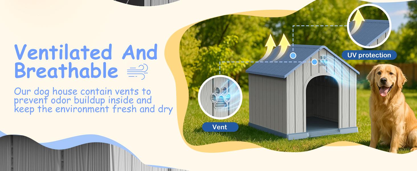 Sturdy and Durable: This big dog house is made of high quality PP (polypropylene) material, which is extremely durable.The PP material is scratch-resistant, abrasion-resistant, and also waterproof. It can withstand all kinds of weather conditions, such as rain and sunlight exposure, and is not easily damaged.